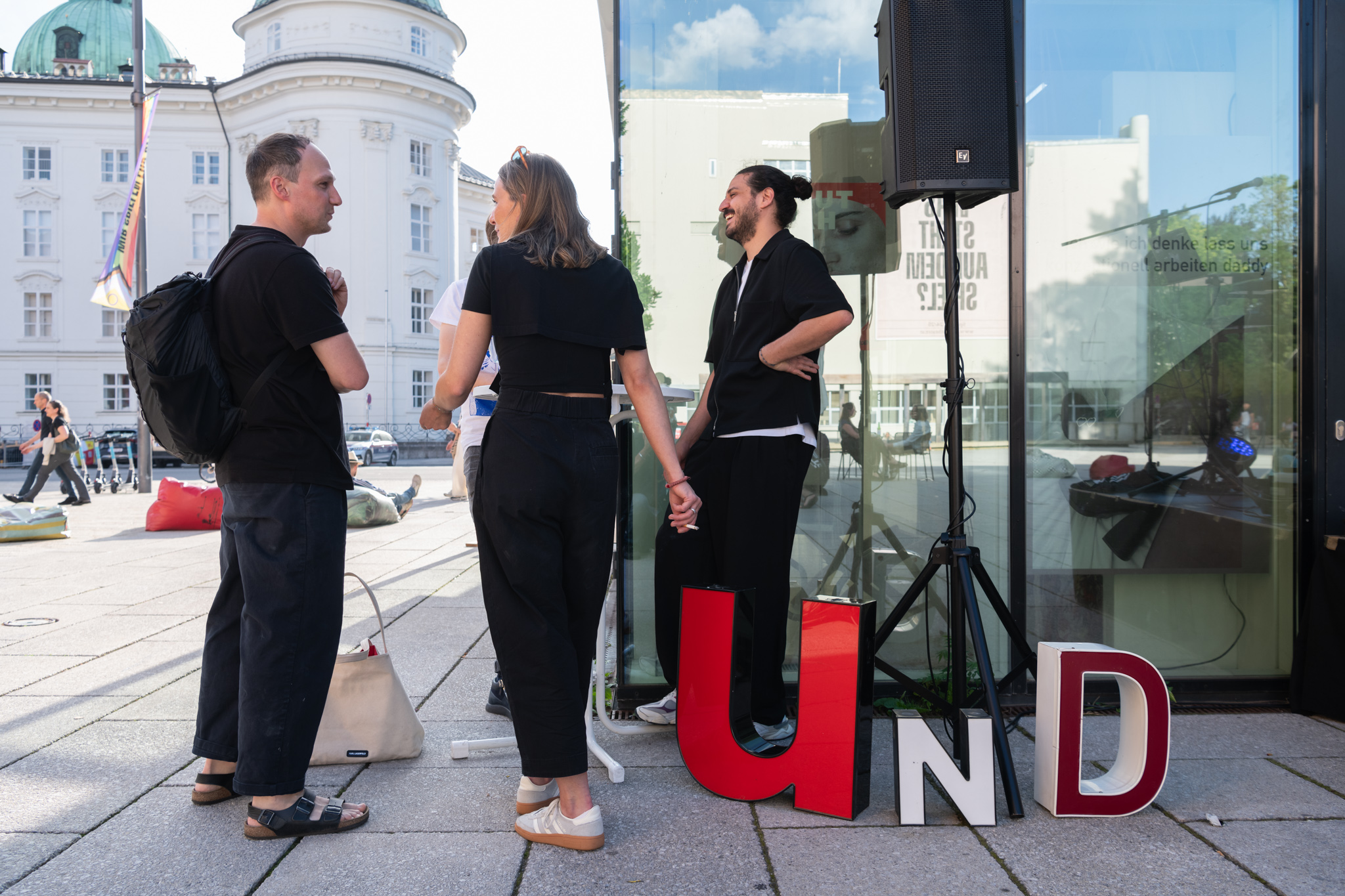 Der Artspace RFDINSEL am Vorplatz des Landestheaters hat eingeladen und das UND Heft hat freudig angenommen. Wie zwei Twinni-Hälften haben wir beide zueinander gefunden und den Sommer 2024 mit einer ganz besonderen Gruppenausstellung gemeinsam verbracht.